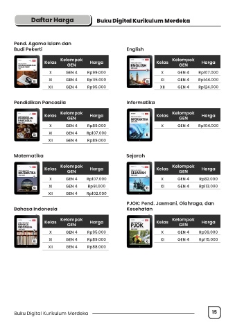 Daftar Harga Buku Digital Kurikulum Merdeka