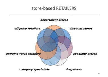 store-based RETAILERS __________________________ department stores off-price retailers discount stores extreme value retailers specialty stores category specialists drugstores 10