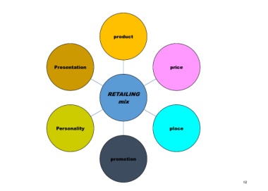 product Presentation price RETAILING mix Personality place promotion 12