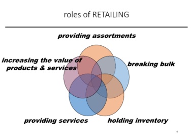 roles of RETAILING __________________________ providing assortments increasing the value of breaking bulk products & services providing services holding inventory 4