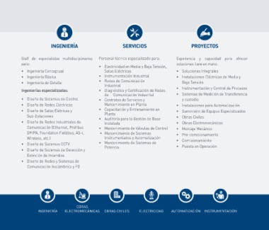 • Ingeniería Básica • Instrumentación Industrial • Instalaciones Eléctricas de Media y