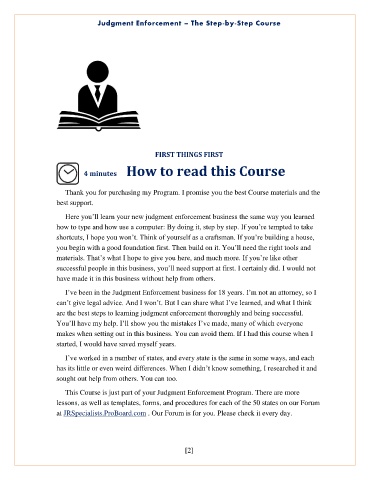 Here you’ll learn your new judgment enforcement business the same way you learned