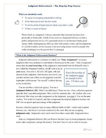 Judgment enforcement is a business in which you “Take Assignment” on money