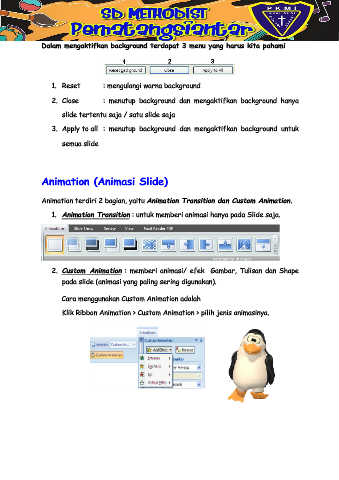 2. Custom Animation : memberi animasi/ efek Gambar, Tulisan dan Shape