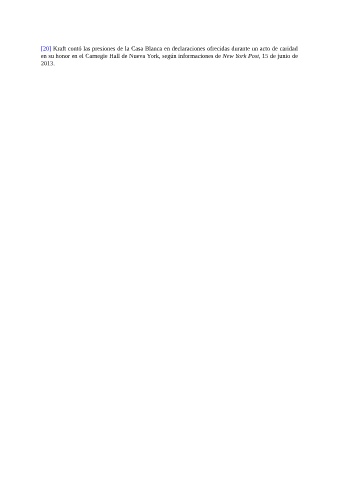 [20] Kraft contó las presiones de la Casa Blanca en declaraciones ofrecidas durante un acto de caridad en su honor en el Carnegie Hall de Nueva York, según informaciones de New York Post, 15 de junio de 2013.
