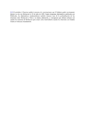 durante su cita con Berlusconi el 20 de julio de 2009. Según telegramas diplomáticos publicados por