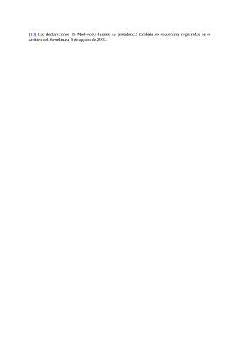 [10] Las declaraciones de Medvédev durante su presidencia también se encuentran registradas en el archivo del Kremlin.ru, 8 de agosto de 2009.