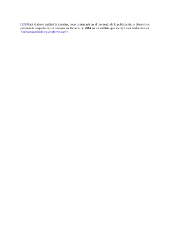[13] Mark Galeotti analizó la doctrina, poco comentada en el momento de la publicación, y observó su pertinencia respecto de los sucesos en Ucrania de 2014 en un análisis que incluyó esta traducción en <inmoscowsshadows.wordpress.com>.