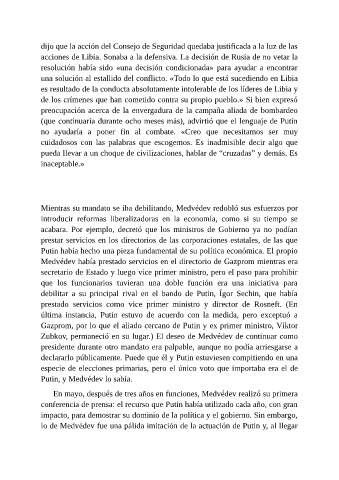 acciones de Libia. Sonaba a la defensiva. La decisión de Rusia de no vetar la