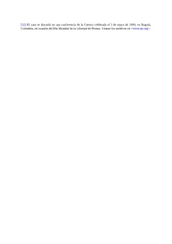 [32] El caso se discutió en una conferencia de la Unesco celebrada el 3 de mayo de 1999, en Bogotá, Colombia, en ocasión del Día Mundial de la Libertad de Prensa. Véanse los archivos en <www.un.org>.