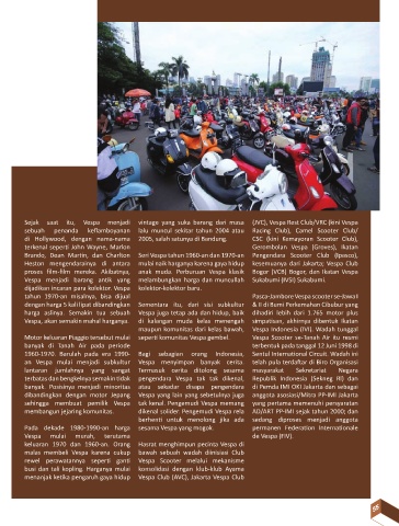 Sejak saat itu, Vespa menjadi vintage yang suka barang dari masa (JVC), Vespa Rest Club/VRC (kini Vespa