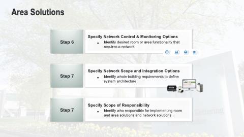 Specify Network Control & Monitoring Options • Identify desired room or area functionality that