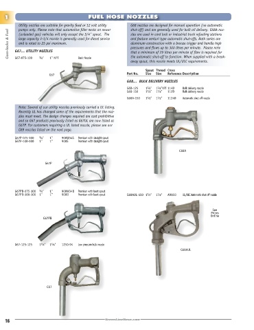 G67PB-100-100 1" 1" 900B Premium with bent spout G68AUL-150 1 1 ⁄2" 1 1 ⁄2" AN150 UL/ULC Automatic shut off nozzle