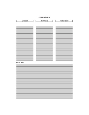 FEBRERO 2018 LUNES 05 MARTES 06 MIERCOLES 07 IMPORTANTE