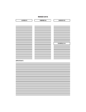 MARZO 2018 JUEVES 01 VIERNES 02 SABADO 03 DOMINGO 04 IMPORTANTE