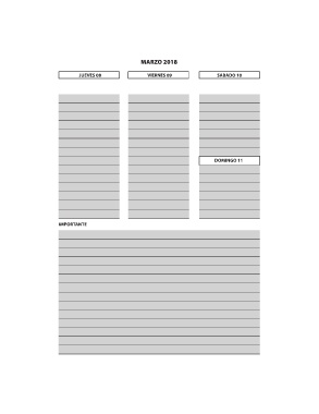 MARZO 2018 JUEVES 08 VIERNES 09 SABADO 10 DOMINGO 11 IMPORTANTE