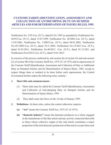 CUSTOMS TARIFF (IDENTIFICATION, ASSESSMENT AND
