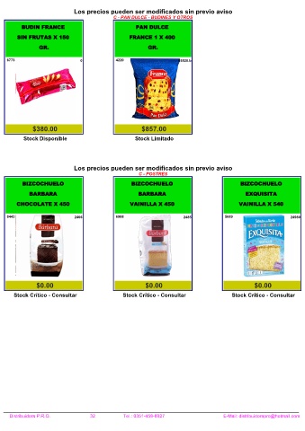 Distribuidora P.R.O. 32 Tel.: 0351-458-8927 E-Mail: distribuidorapro@hotmail.com