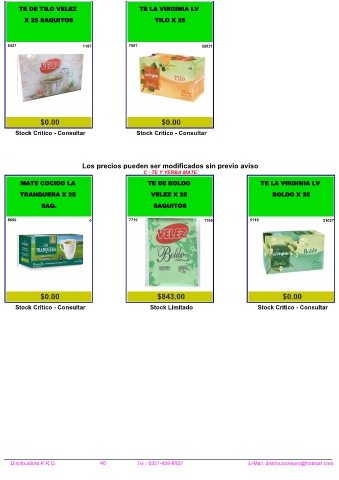 Distribuidora P.R.O. 40 Tel.: 0351-458-8927 E-Mail: distribuidorapro@hotmail.com