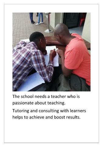 The school needs a teacher who is passionate about teaching. Tutoring and consulting with learners helps to achieve and boost results.