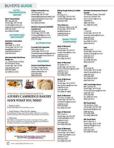 Cambridge, ON N1T 2E4 Azores Cambridge Bakery Cambridge, ON N3C 1G2 CIBC