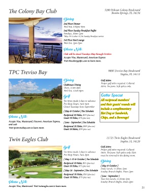 Accepts Visa, Mastercard. Visit twineagles.com to learn more. 21