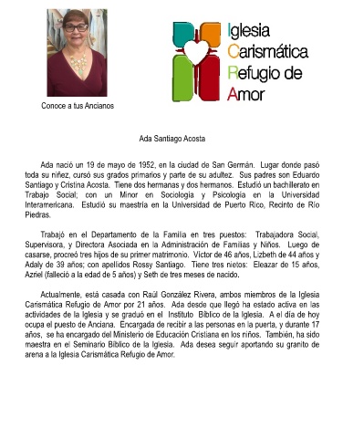 maestra en el Seminario Bíblico de la Iglesia. Ada desea seguir aportando su granito de