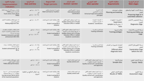 مؤشرات التنفيذ المدة الزمنية الفئة المستهدفة المنفذ المساند المنفذ الرئيسي متطلبات التنفيذ المراحل الرئيسية
