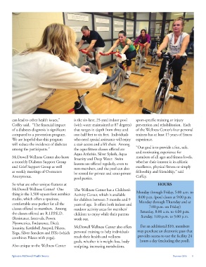 McDowell Wellness Center also hosts Insanity and Deep Water. Swim members of all ages and fitness levels,