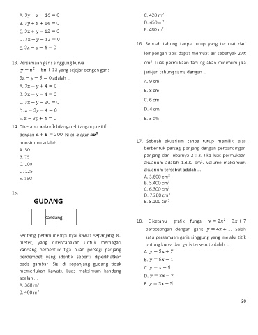 13. Persamaan garis singgung kurva cm . Luas permukaan tabung akan minimum jika