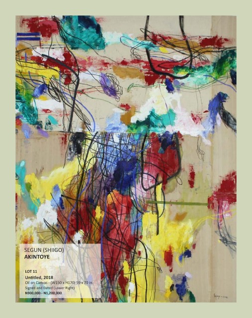 SEGUN (SHIIGO) AKINTOYE LOT 11 Untitled, 2018 Oil on Canvas - (W150 x H170) 59 x 70 in. Signed and Dated (Lower Right) N900,000 - N1,200,000