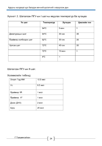 Хүснэгт 2. Шаталсан ПГУ-ын I шатны явуулах температур ба хугацаа