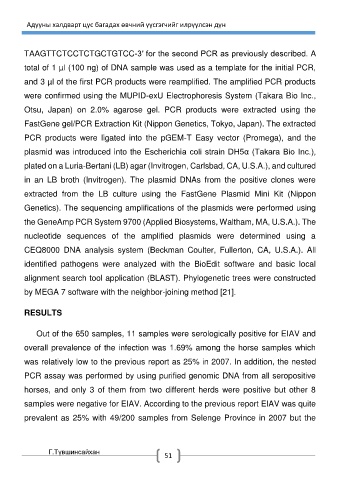 Page 51 - Адууны халдварт цус багадах өвчний үүсгэгчийг илрүүлсэн дүн