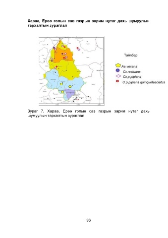 Хараа, Ерөө голын сав газрын зарим нутаг дахь шумуулын тархалтын зураглал Зураг 7. Хараа, Ерөө голын сав газрын зарим нутаг дахь шумуулын тархалтын зураглал 36