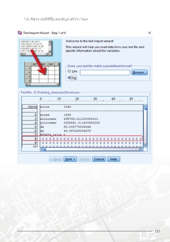 14) สังเกตบรรทัดที่เริ่มของขอมูล แลวกด Next 121