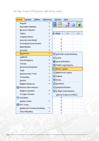 23) ในแถบ Analyze ไปที่ Regression เลือก Binary Logistic... 128