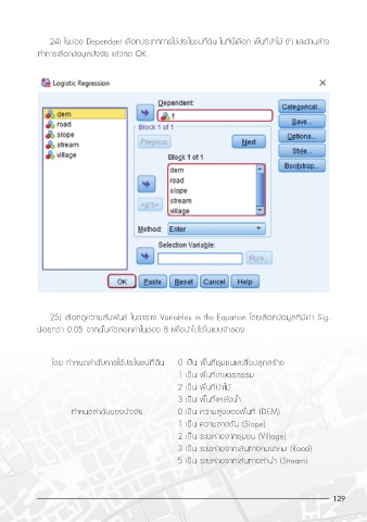 24) ในชอง Dependent เลือกประเภทการใชประโยชนที่ดิน ในที่นี้เลือก พื้นที่ปาไม (F) และดานลาง