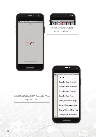 แสดงทิศทางการเดินทาง และระยะทางทั้งหมด สามารถแสดงแผนที่จาก Google Map ในรูปแบบตาง ๆ 148