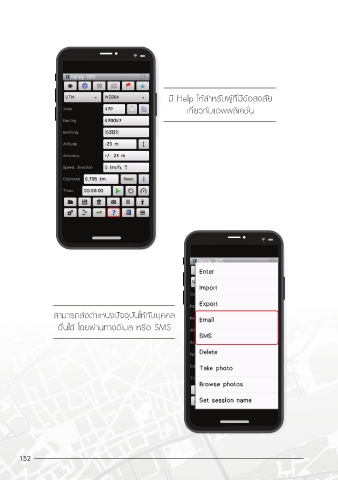 มี Help ใหสำหรับผูที่มีขอสงสัย เกี่ยวกับแอพพลิเคชั่น สามารถสงตำแหนงปจจุบันใหกับบุคคล อื่นได โดยผานทางอีเมล หรือ SMS 152