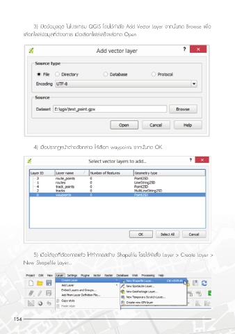 3) เปดขอมูลจุด ในโปรแกรม QGIS โดยใชคำสั่ง Add Vector Layer จากนั้นกด Browse เพื่อ
