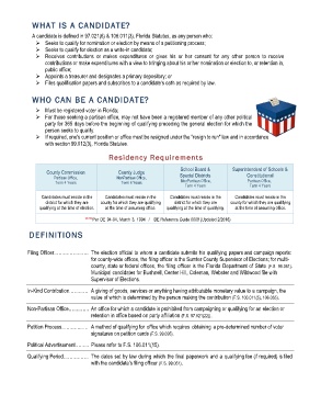 A candidate is defined in 97.021(6) & 106.011(3), Florida Statutes, as any person who: