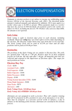 The Early Voting Clerk will be paid at $12.00 per hour and all other