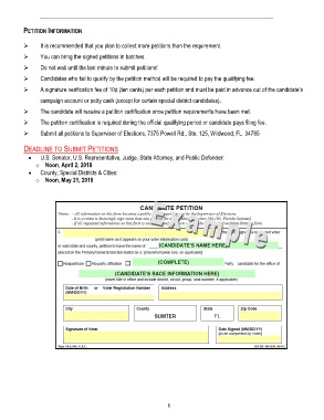 Submit all petitions to Supervisor of Elections, 7375 Powell Rd., Ste. 125, Wildwood, FL 34785