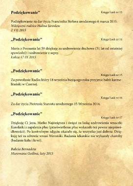 „Podziękowanie”                                             Księga Łask nr 14