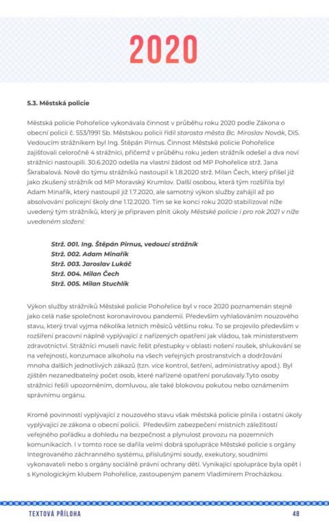 uvedený tým strážníků, který je připraven plnit úkoly Městské policie i pro rok 2021 v níže