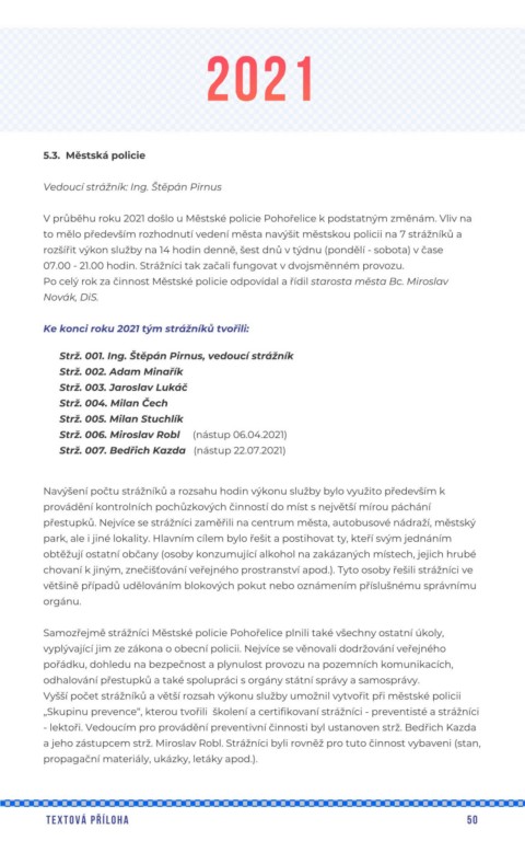 V průběhu roku 2021 došlo u Městské policie Pohořelice k podstatným změnám. Vliv na