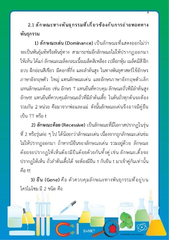 2.1 ลักษณะทำงพันธุกรรมที่เกี่ยวข้องกับกำรถ่ำยทอดทำง