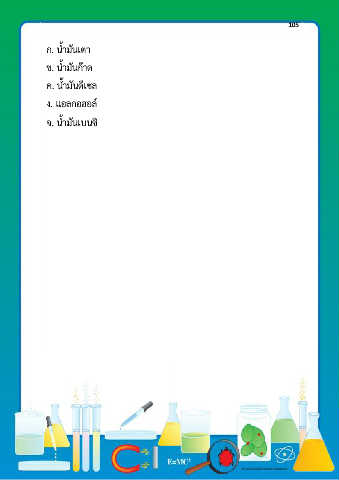 105 ก. นํ้ามันเตา ข. นํ้ามันก๊าด ค. นํ้ามันดีเซล ง. แอลกอฮอล์ จ. นํ้ามันเบนซิ