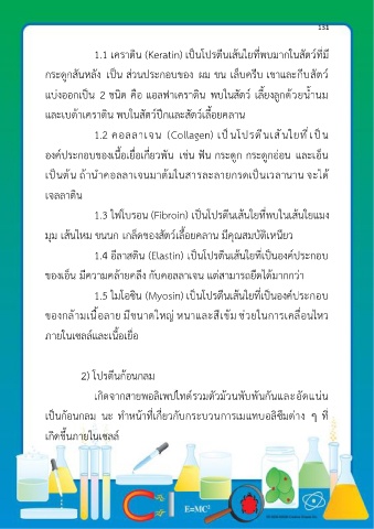 1.1 เคราติน (Keratin) เป็นโปรตีนเส้นใยที่พบมากในสัตว์ที่มี