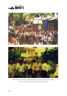 ประวัติศาสตร์จานเดียว เมื่อมีการเดินขบวนประท้วงรัฐบาลครั้งใด ก็มักจะเห็นชาสวพม่าชูภาพนายพลอองซานทุกครั้งไป (ภาพจาก www.facebook.com/pages/Myanmar-Political-Review) ๑๗๖